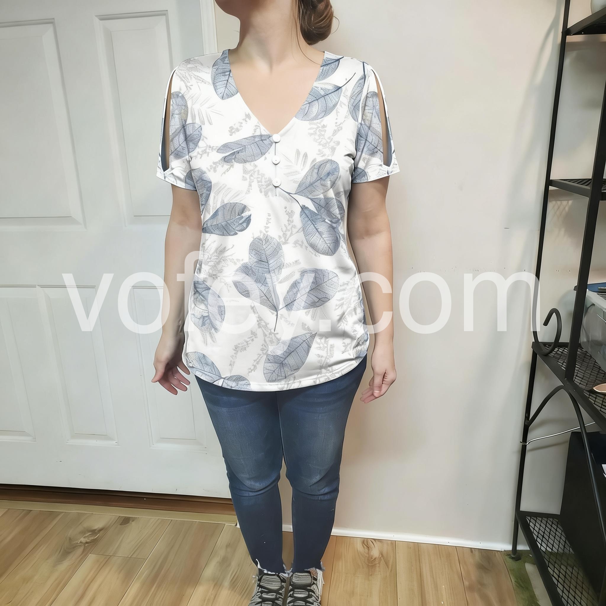- Neckline: V-neck