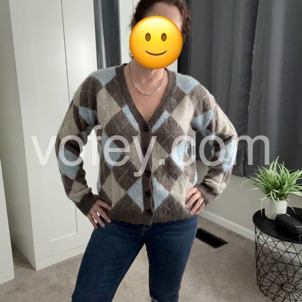 This cardigan features a timeless argyle geometric print in versatile neutral tones, offering a sophisticated layering option. Crafted with a button-front design, it allows easy wear and adjustable styling. Its refined pattern blends classic and contemporary elements, making it an ideal choice for enhancing both casual and polished outfits with subtle texture and depth.