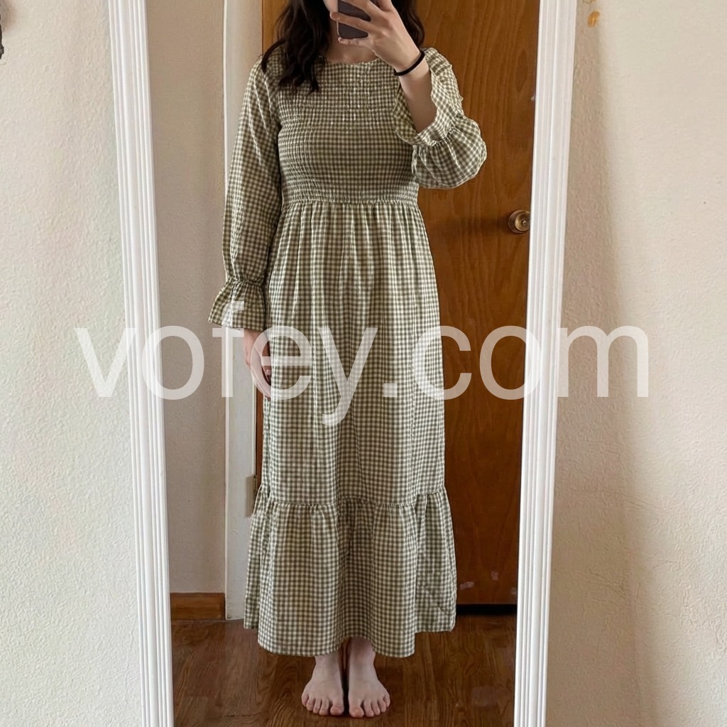 Effortlessly chic and versatile, our Green Check Round Neck Maxi Dress is a must-have for your wardrobe. The classic round neck design and green check print add a touch of sophistication, while the flowy maxi length ensures comfort and style. Perfect for any occasion, this dress is sure to turn heads.