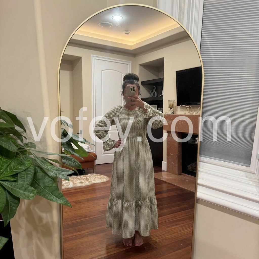 Green Check Round Neck Maxi Dress