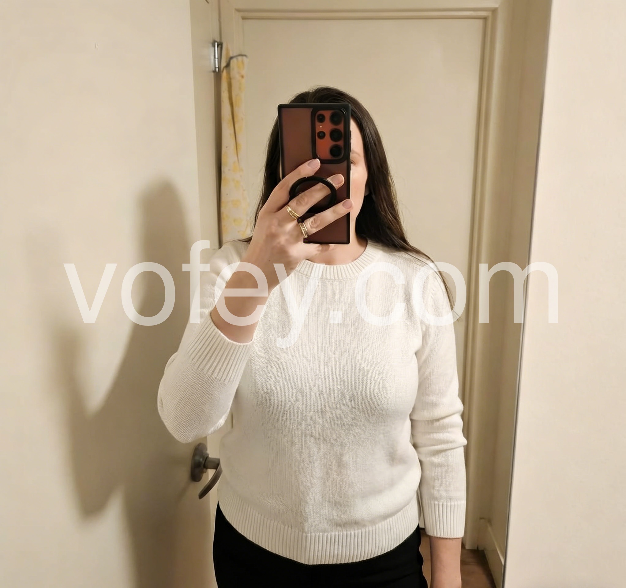 This soft white sweater features a classic round neck and ribbed knit design, offering both comfort and refined texture. Its plain, versatile style makes it an ideal layering piece for various outfits, while the quality knit ensures durability and a flattering fit. Perfect for maintaining warmth without bulk, it delivers understated elegance suitable for professional and casual settings alike.