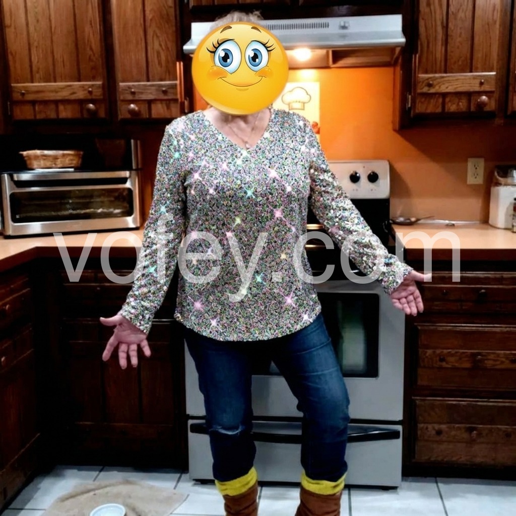 Disco Ball Tinsel Metallic Print Long Sleeve Top