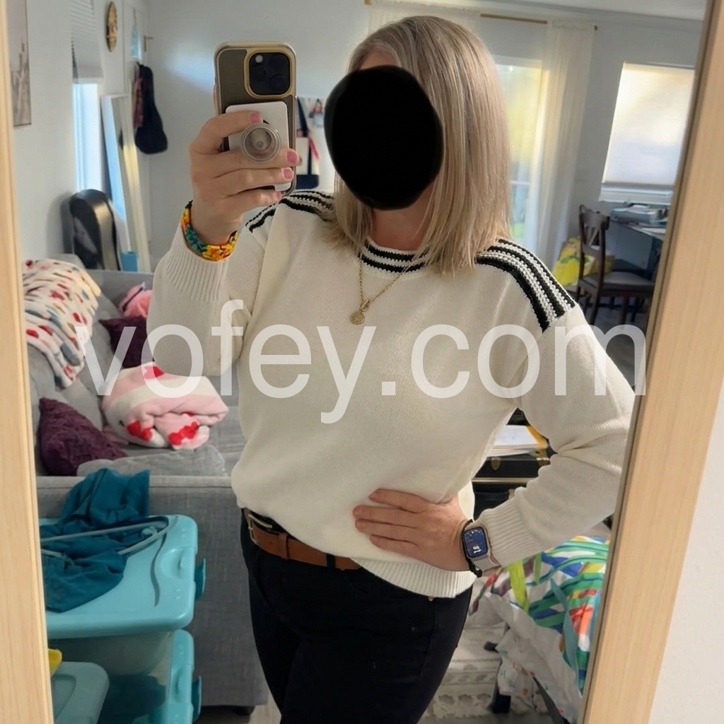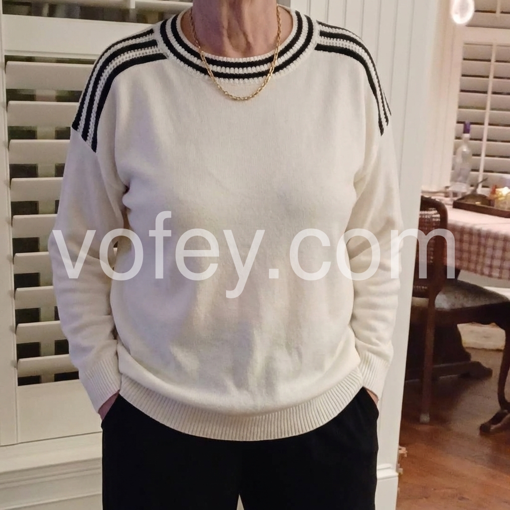 Ivory Color Block Round Neck Sweater