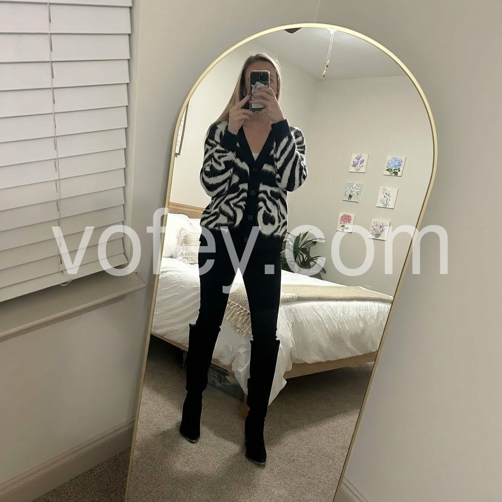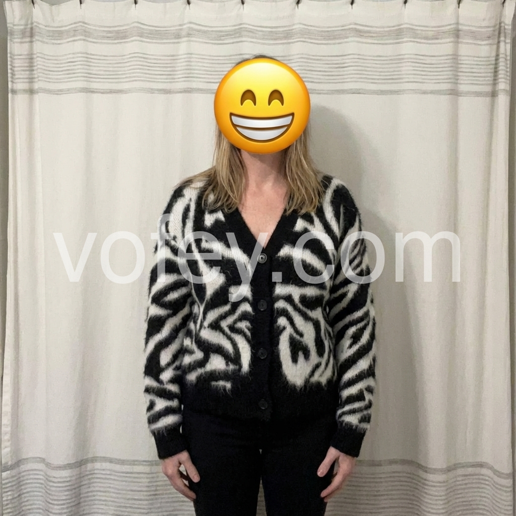 Elevate your wardrobe with this bold zebra-print knit cardigan crafted from a luxurious soft mohair blend. Its distinctive pattern adds a striking visual contrast, while the mohair fibers ensure lightweight warmth and a plush texture. Designed for both style and comfort, this cardigan is ideal for layering during transitional seasons, providing a sophisticated yet edgy statement piece to your collection.